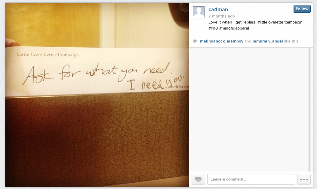 Making a small, genuine, loving gesture in a person’s day - especially when it's a total stranger can end up having an enormous affect on their lives. We've seen the ripple effect this has caused already and we've both be deeply moved by the impact our randomly left words have made on someone else's day. To see the feedback or to leave your own visit our Little Love Letters on Facebook, or #littlelovelettercampaign on Twitter.